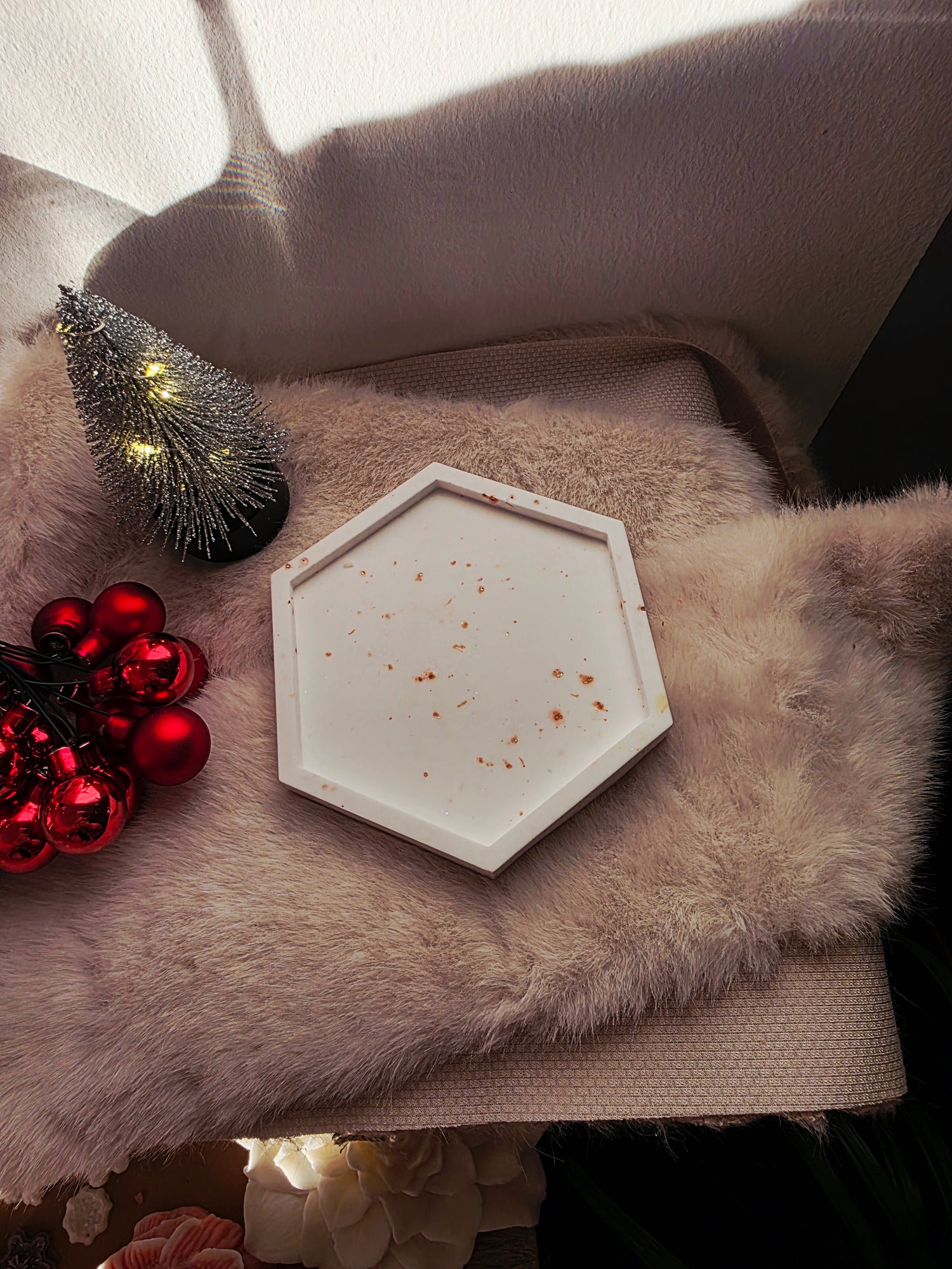 Ergänze deine Kerze mit dem passenden handgefertigten Untersetzer für einen sicheren Stand und ein harmonisches Gesamtbild.